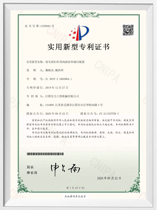 Certificado de patente de modelo de utilidad